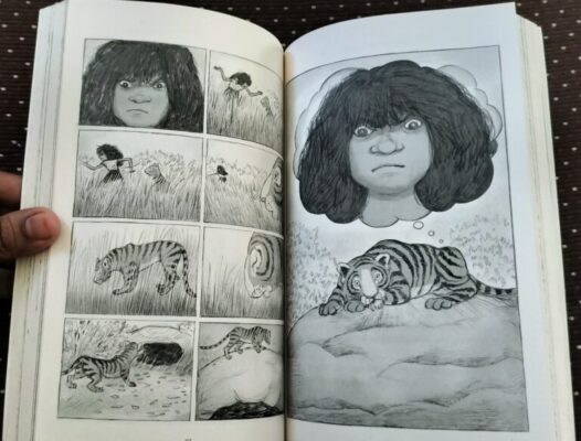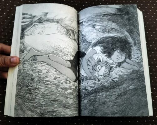 I also loved the unique format of the book. The story is told through two point of views — one belonging to Junglee and the other to Raunaq. But it is truly their story together. Raunaq’s side is told entirely through drawings, not words, which shows how tigers might imagine the world. The black-and-white sketches by Priya Kuriyan are simple yet bursting with emotion. Imagining Raunaq’s entire thought process through sketches alone is just… wow. So thoughtful. So creative.
